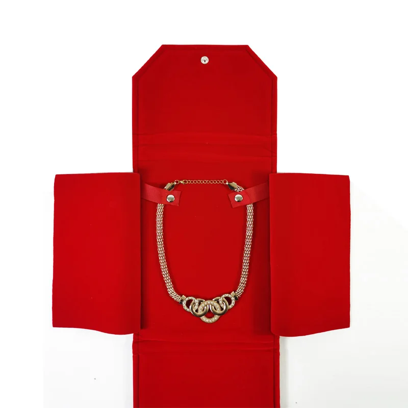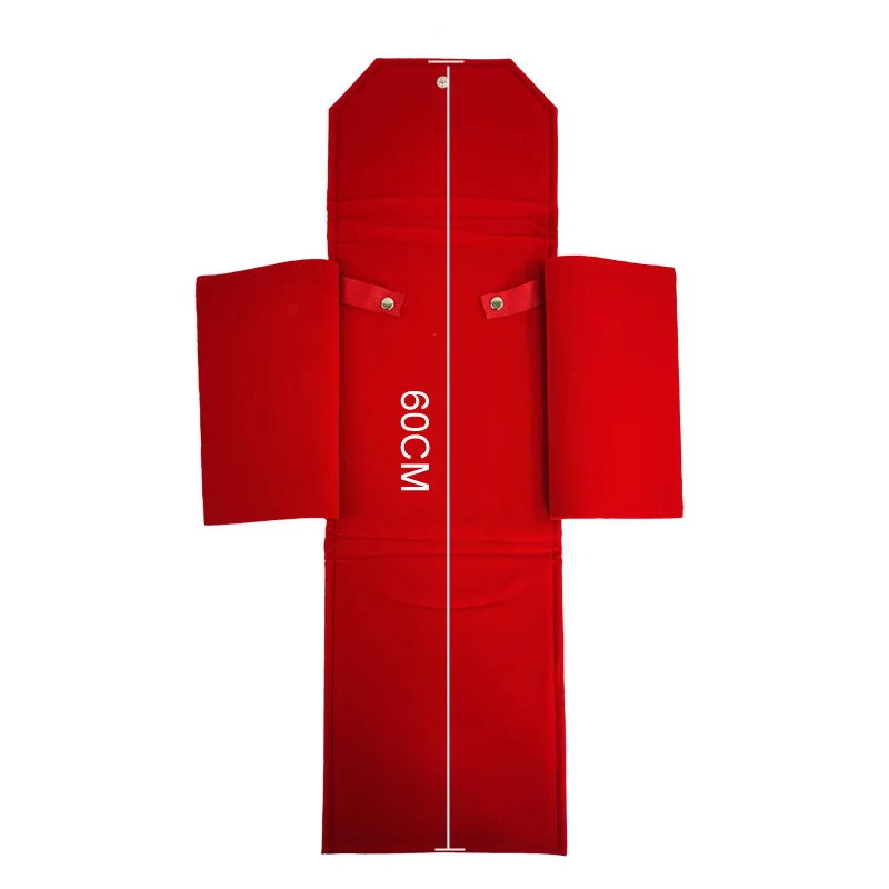 Chinese Red Necklace Organizer Velvet Jewelry Holder Pearl Necklace Storage Bag for Exhibitor Gold Chain Jewelry Holder