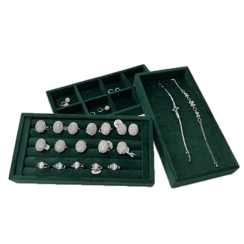 Dark Green Tray for Jewelry Ring Bracelet Display Tray Jewelry Demonstration Watch Organizer Earring Cuff-Link Storage Case