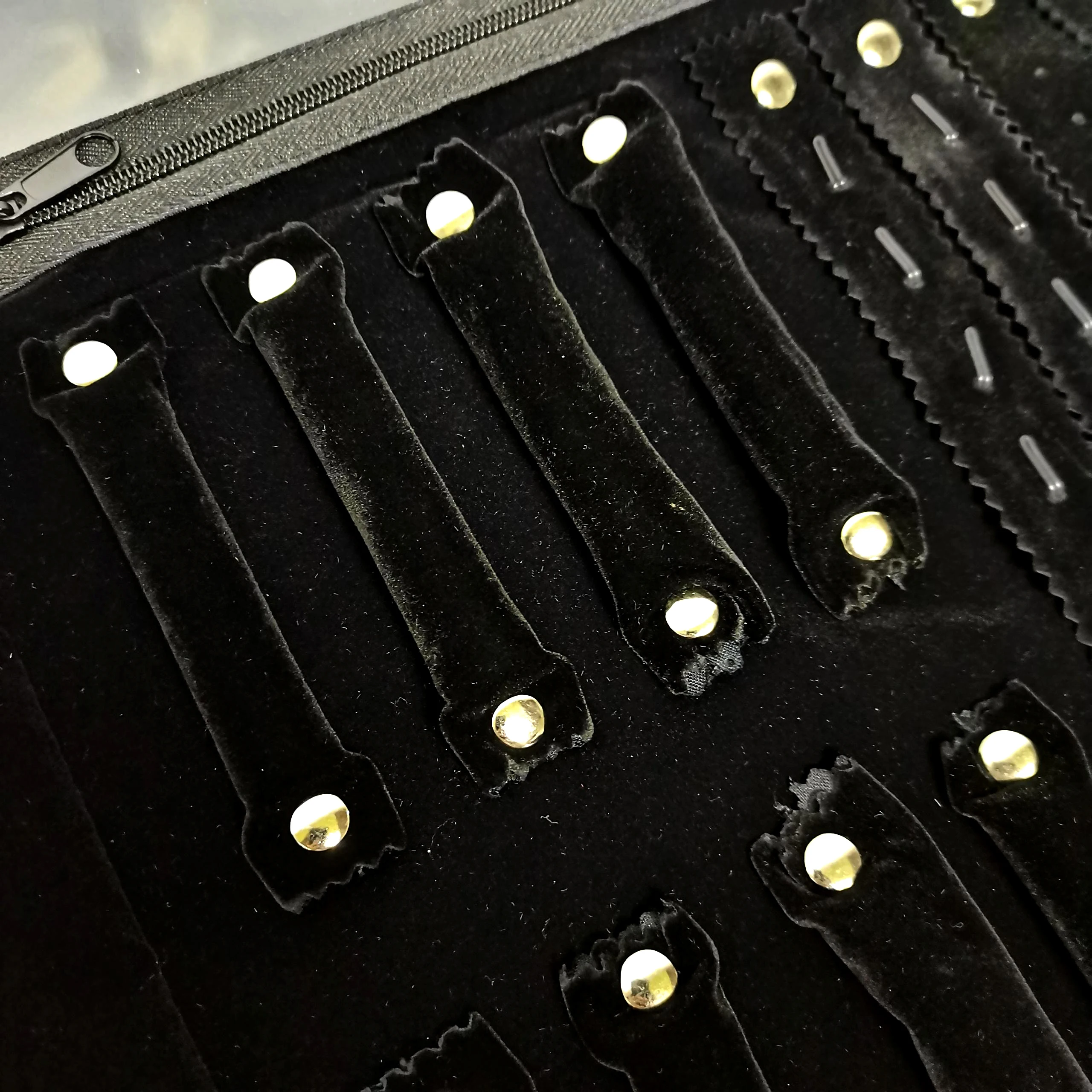 Fashion Black Velvet Jewelry Roll Bag with Zipper Bracelet Organizer Storage Pouch Portable Necklace Display Travel Bag