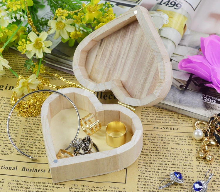 Heart-Shaped Wooden Box Jewelry Case Ring Storage Wooden Contianer Jewelry Creative Gift Box New