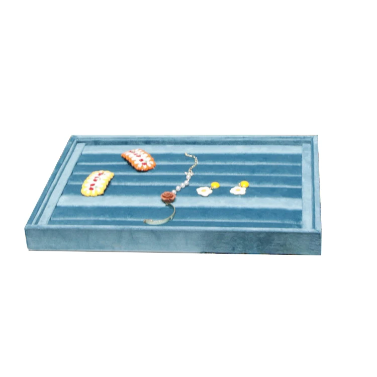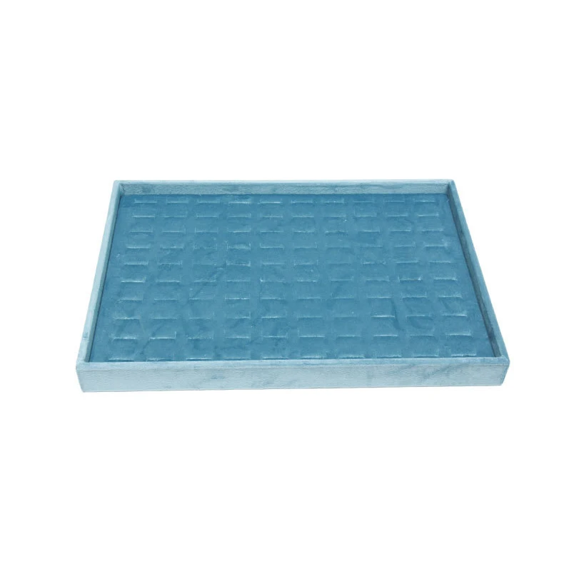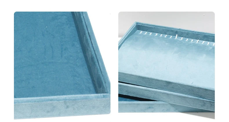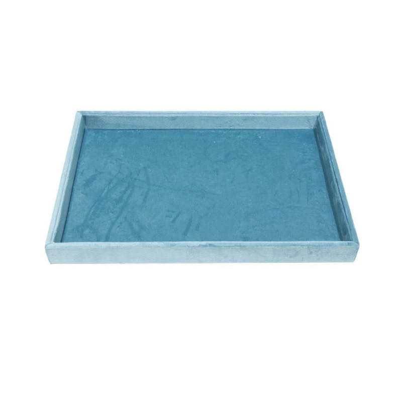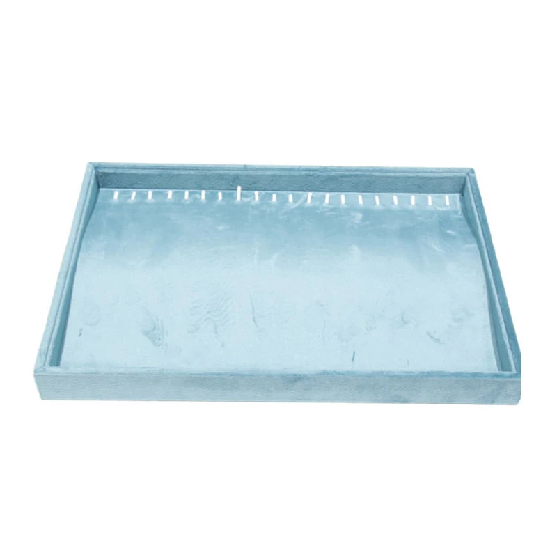 Light Blue Velvet Rings Bracelet Necklace Holder Earrings Pendant Storage Tray Jewelry Organizer Case 35*24Cm