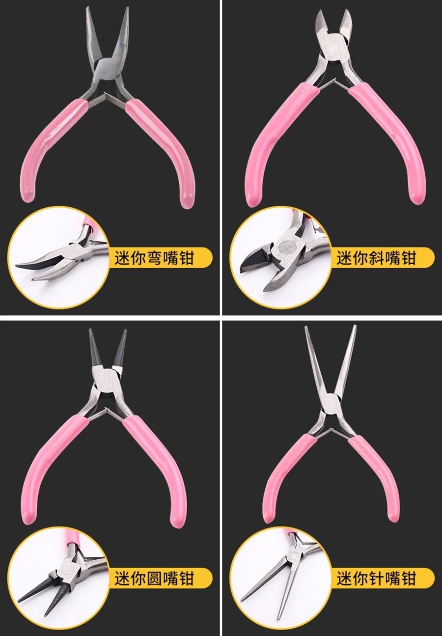 Pink Mini Pliers 9-Piece Diy Headpiece Jewelry Tool Pliers Jewelry Needle Nose Pliers Mini Tool Pliers