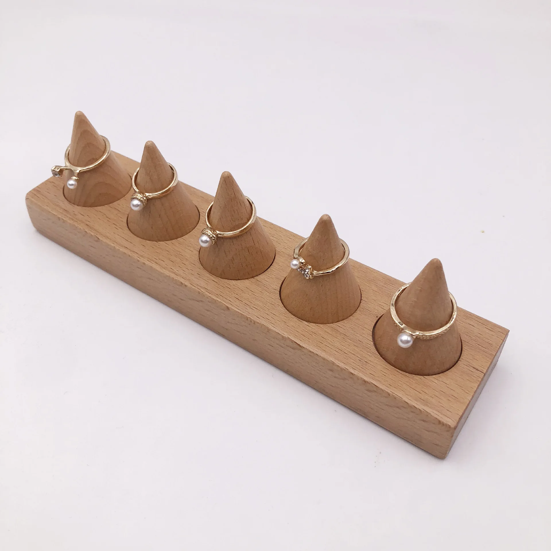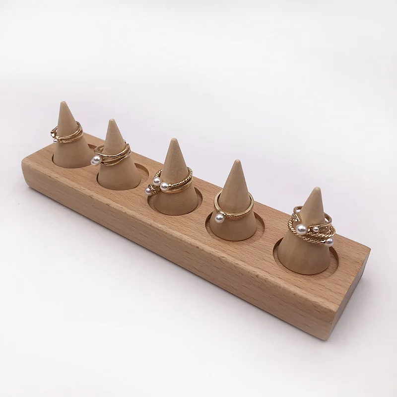 Solid Wood Cone Ring Display Stand Jewelry Counter Ring Display Props Jewelry Storage Rack Rings Organizer