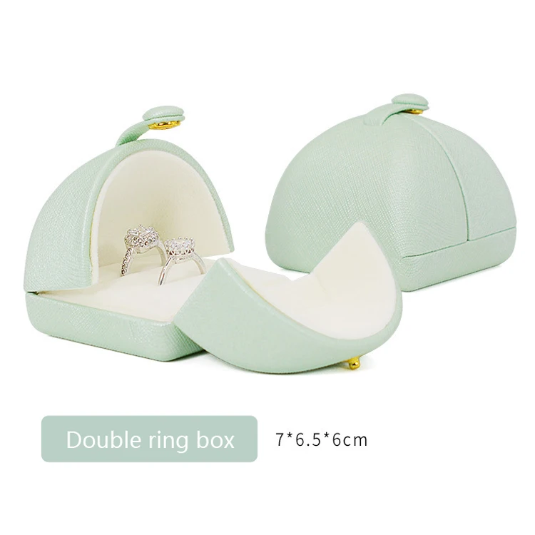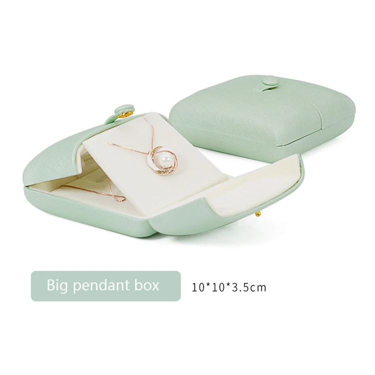 Tender Green Reticulated Pu Leather Double Open Jewelry Storage Box Proposal Ring Box Pearl Necklace Collection Box
