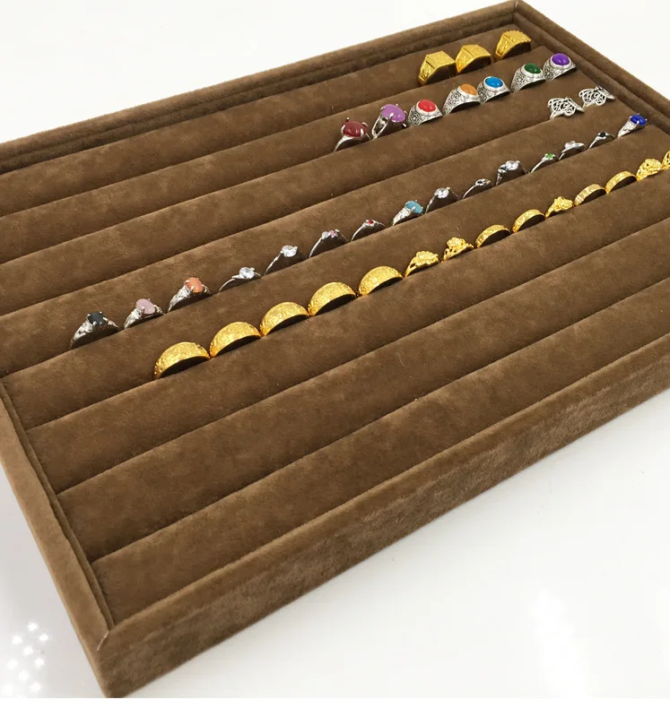 Velvet Jewelry Plate Hundred Ring Display Tray Ear Stud Storage Box Jewelry Display Prop Ring Earring Organizer 35*24Cm