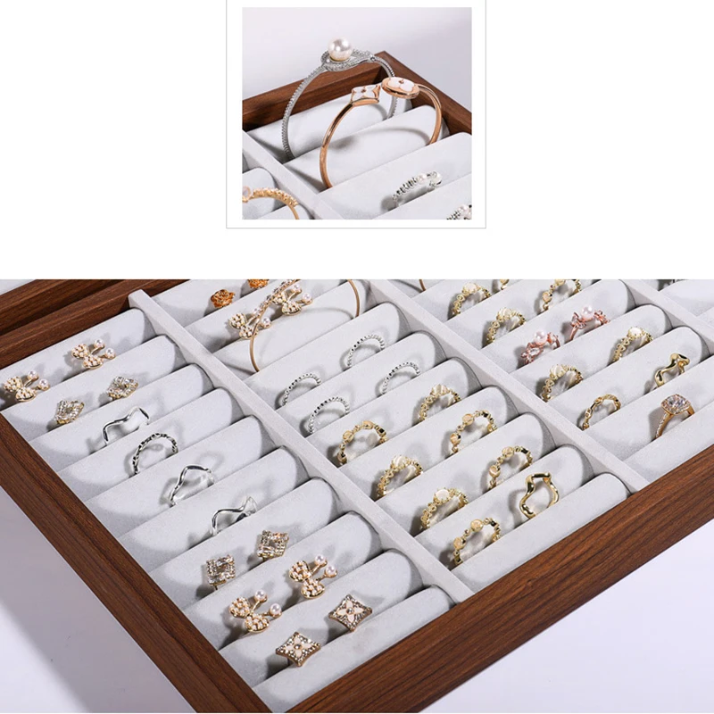 Walnut Grain Jewelry Display Tray Ring Earrings Plate Bracelet Storage Tray Large Capacity Jewelry Holder 35*24Cm