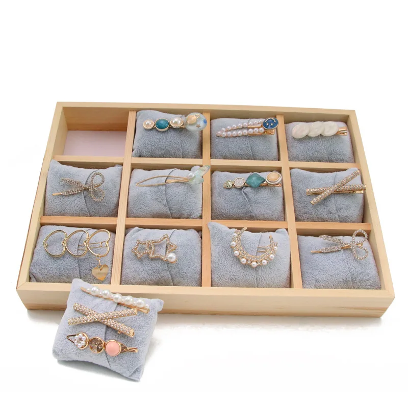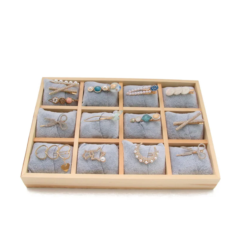 Watch Display Tray with Gray Velvet Pillows 12 Girds Bracelet Watch Hairpin Holder Rack for Jewelry Display Props Plate 35*24Cm