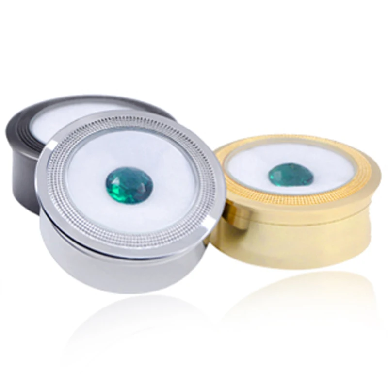 Wholesale 60Pcs/lot Sliver Metal Round Bare Stone Storage Case Black and White Double-Sided Sponge Inside Diamond Display Box